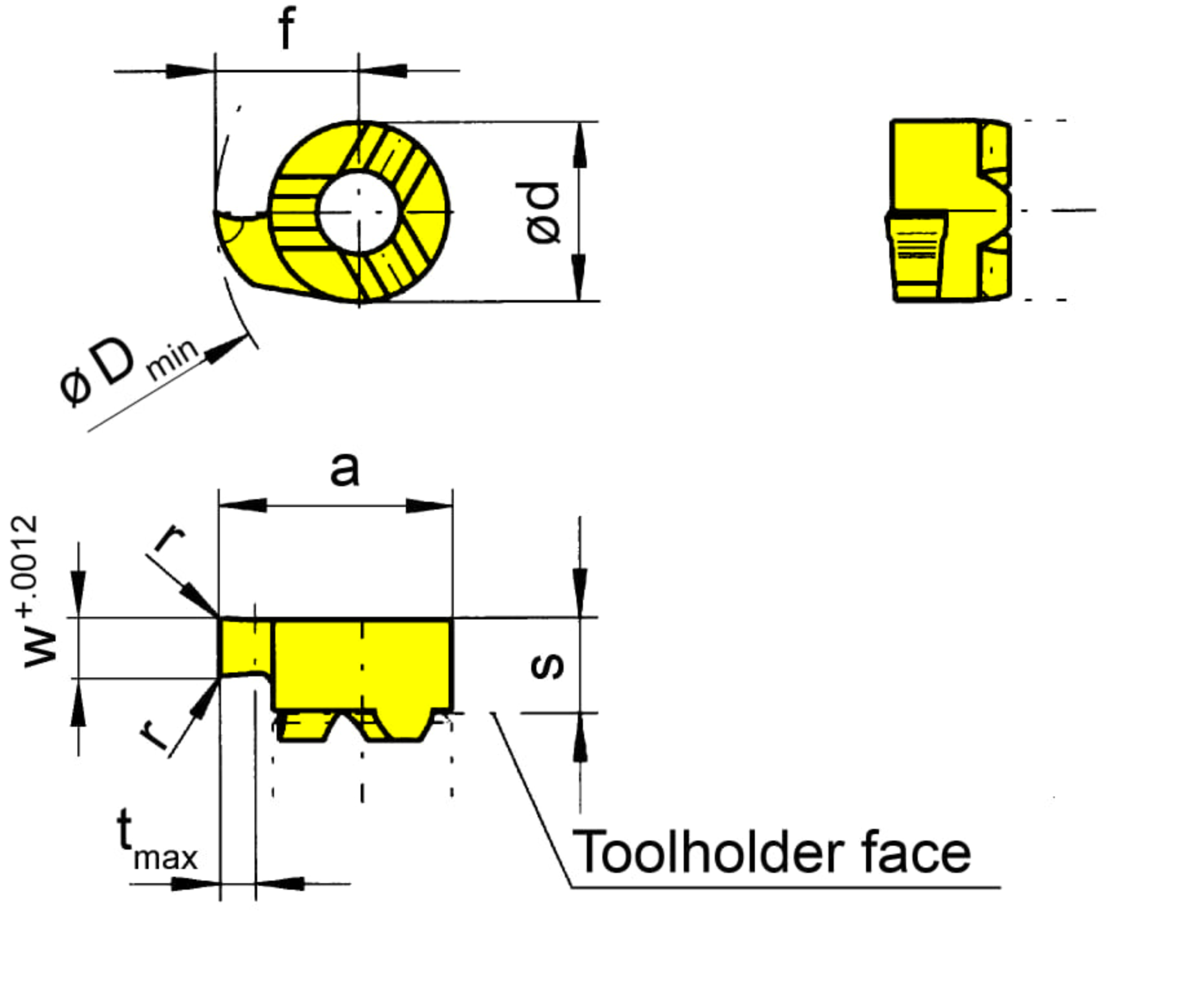 Cutting insert height, Cutting insert thickness (s)